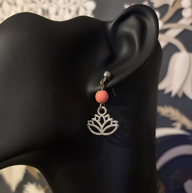 Coral Lotus flower earrings silver plated stud settings