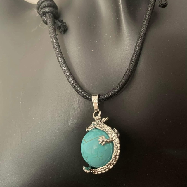 Turquoise Howlite dragon on long Thick slipknot adjustable cord necklace